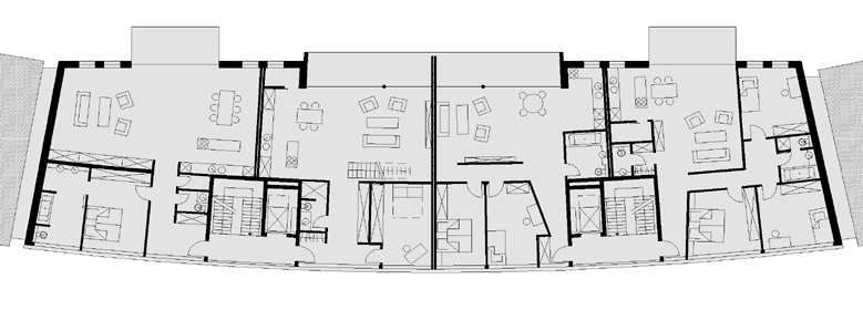 Durch die flexible Grundstruktur des Gebäudes sind die Wohnungen nach Bedarf ausführbar.