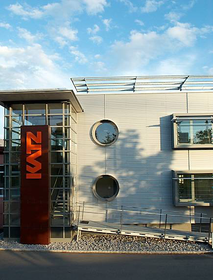Das bestehende Betriebsgebäude der Firma Katz wurde um einen zweigeschossigen Verwaltungsbau erweitert. Die Metall-Fassade spiegelt einen Geschäftszweig der Firma wieder. Im Innern gliedern sich die Büros um eine großzügige Ellipse.