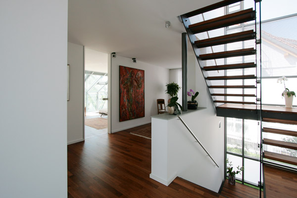 Die Wohn- und Schlafräume befinden sich auf der uneinsehbaren Gartenseite – die Bäder und Arbeitsräume sind zur Straßenseite orientiert.