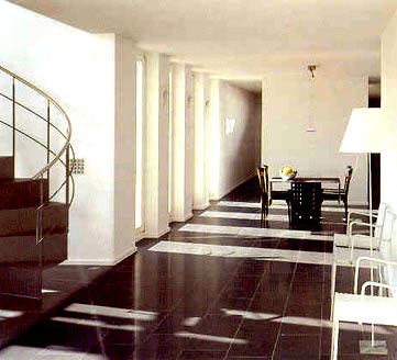 Das östlich gelegene Wohngebäude öffnet sich über zwei Geschosse zur Südseite.