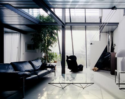 Der Stahlbau ist als charakteristisches Konstruktionsmerkmal in allen Geschossen sichtbar.