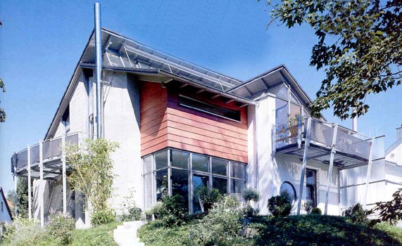 In einem Wohngebiet oberhalb von Baden-Baden entstand dieses Endhaus einer Bebauung mit 3 Reihenhäusern.