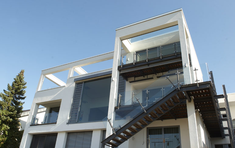 Das 60er Jahre Haus in einem gewachsenen Baugebiet wurde vollständig umgebaut und saniert. Aus dem Satteldach wurde ein Flachdach. Die neue zeitgemäße Architektur zeigt sich in vielen Details.