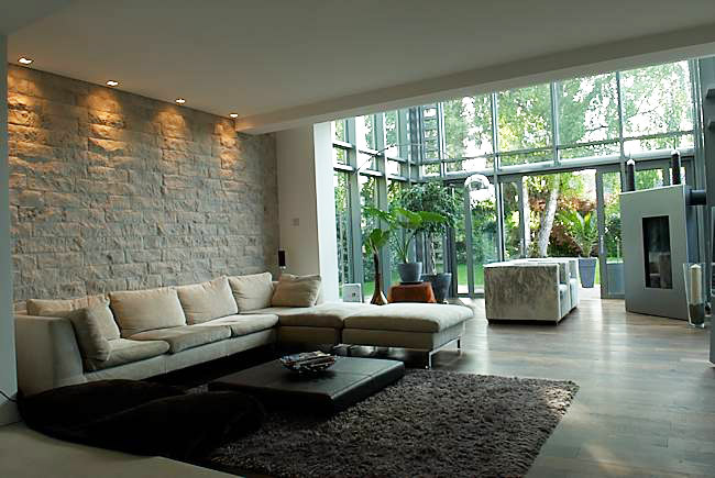 Das 60er Jahre Haus in einem gewachsenen Baugebiet wurde umgebaut und um einen zweigeschossigen Wintergarten erweitert. Das alte Treppenhaus wurde erhalten und völlig überarbeitet - die alte geschwungene Treppe wurde zur Skulptur.