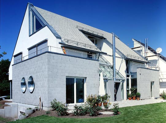 Am Rande eines unverbaubaren Tiefgestades, der "Grünen Lunge" einer Kleinstadt, entstand dieses Einfamilienhaus.
